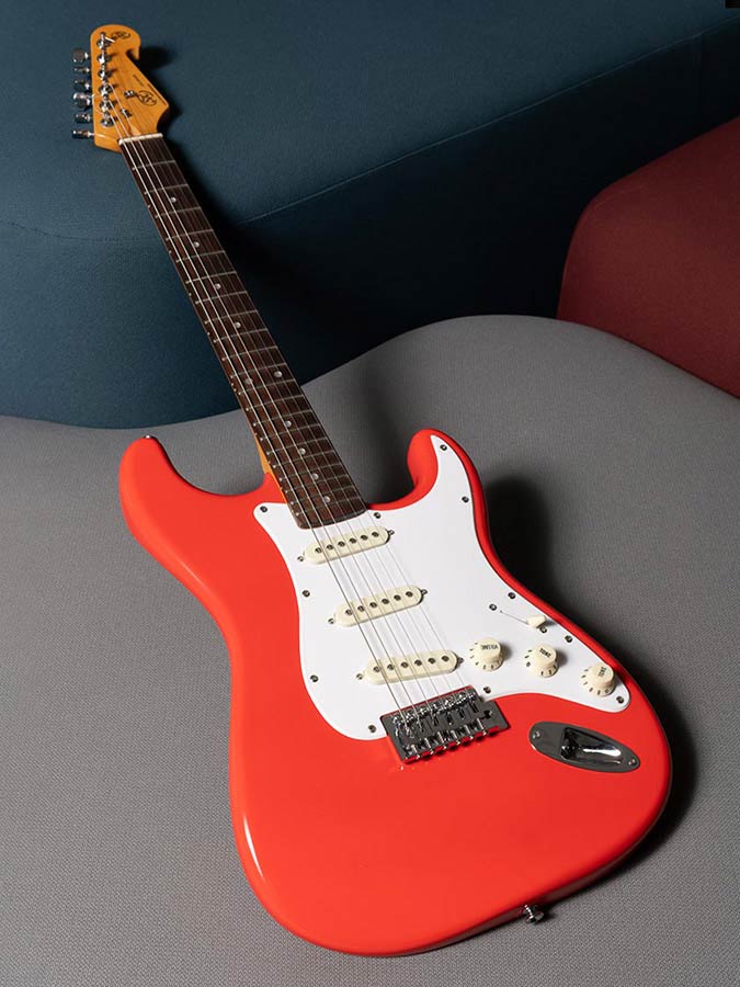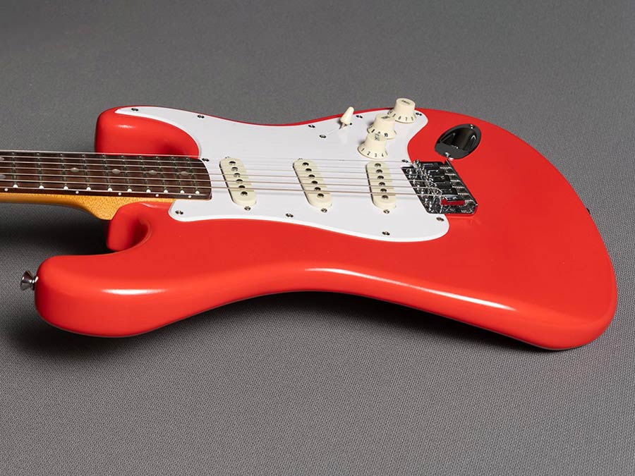 Hot Rod Red is a modern variant of red as used by the Fender Custom Shop. It is similar to Torino Red but about 10% -15% more intense in saturation. It is a colour that gives a lot of character and depth of finish to the guitar.