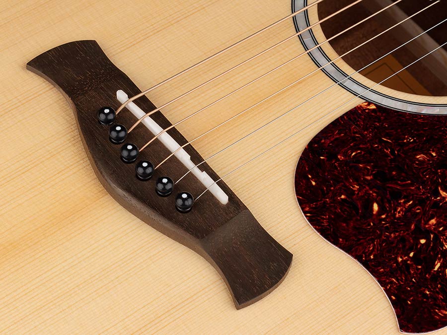 dreadnought guitar, solid spruce top, cutaway, preamp, flamed maple & abalone, natural gloss
