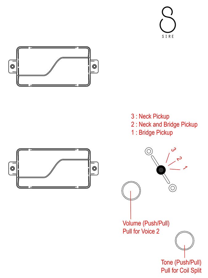 | controls | 3way lever switch volume (push/pull for voice2) tone (push/pull for coil split) |