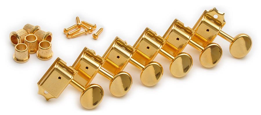machine heads for guitar "No Line", 6x left with oval buttons, gold