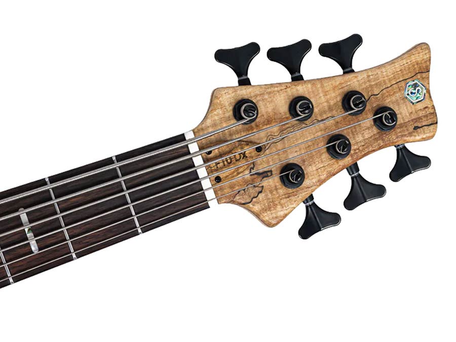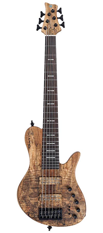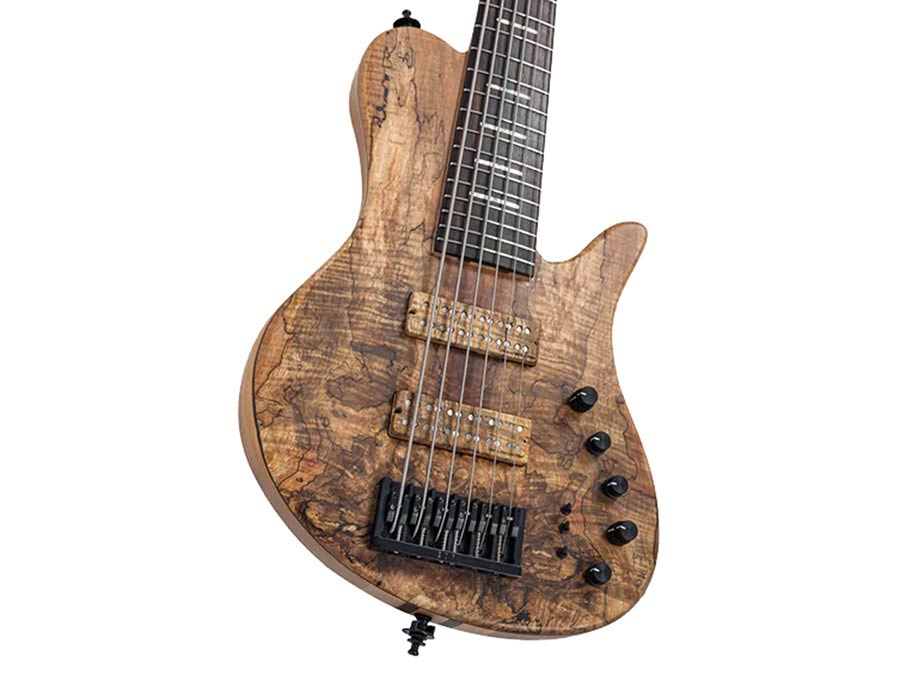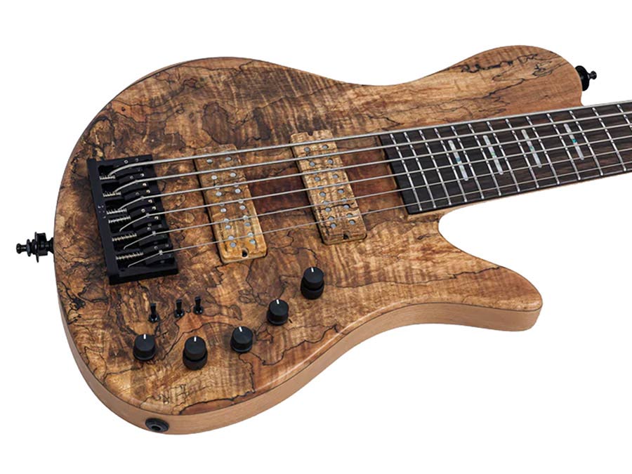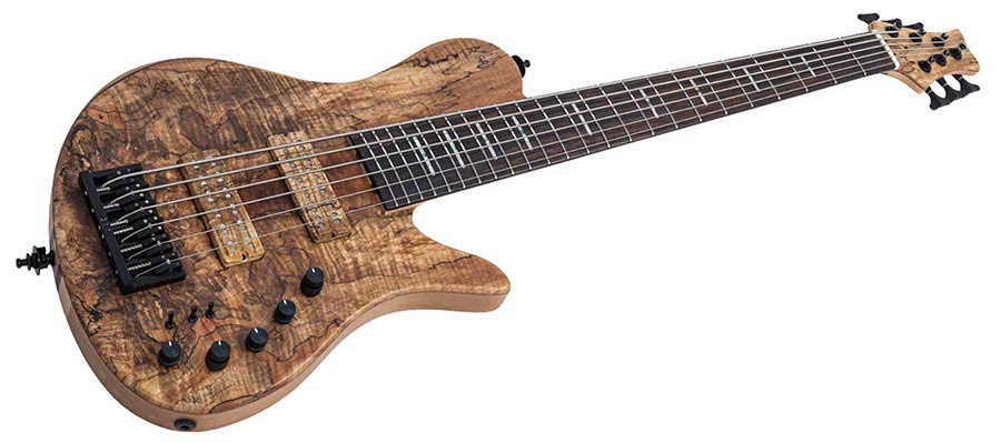 swamp ash + spalted maple top 6-string active bass guitar, natural satin, with hardcase