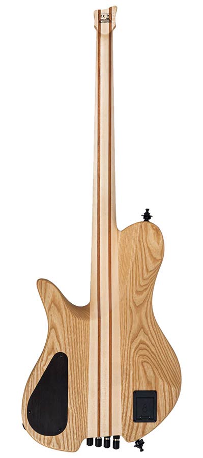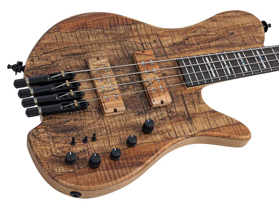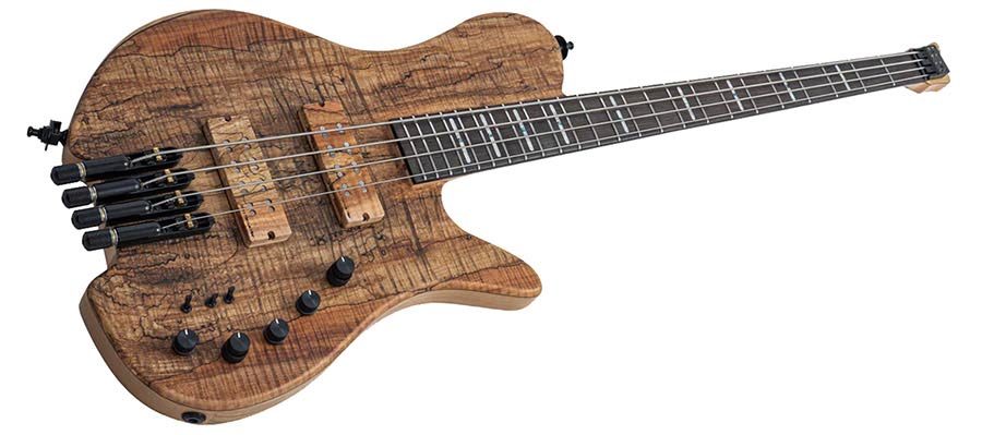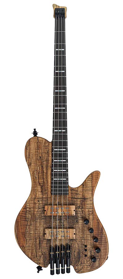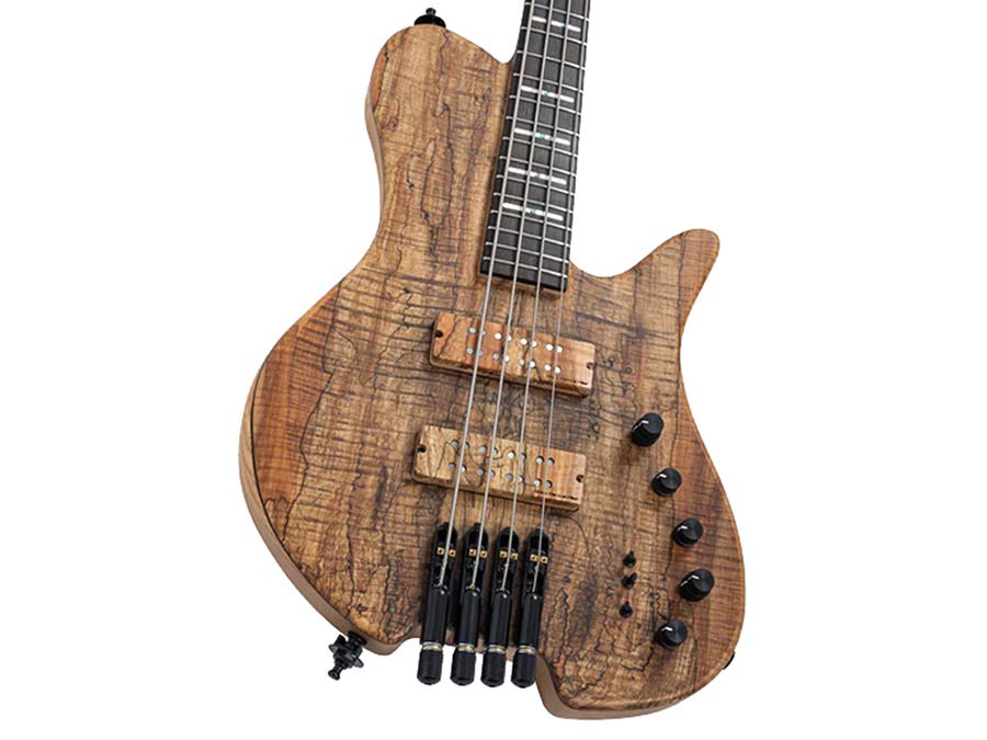 swamp ash + spalted maple top 4-string active headless bass guitar, natural satin, hardfoam case