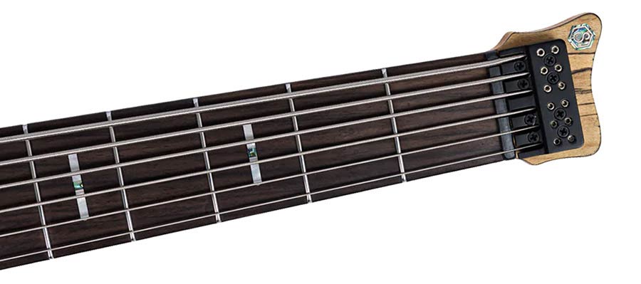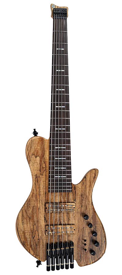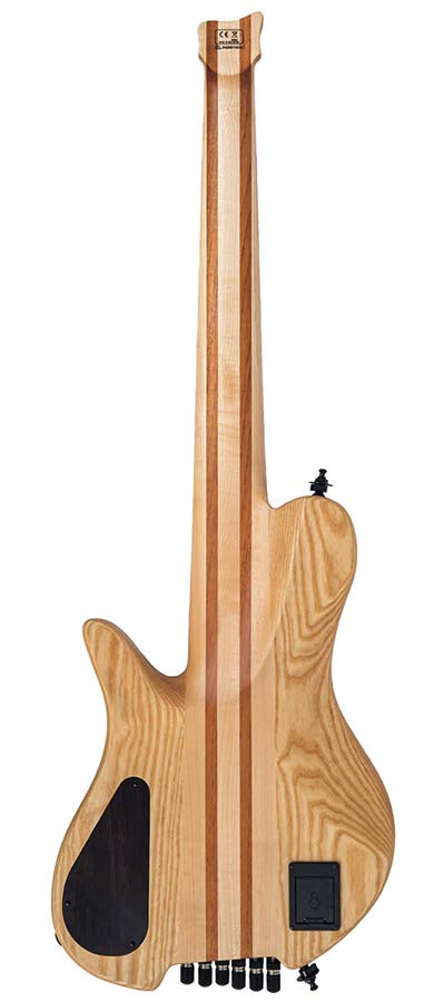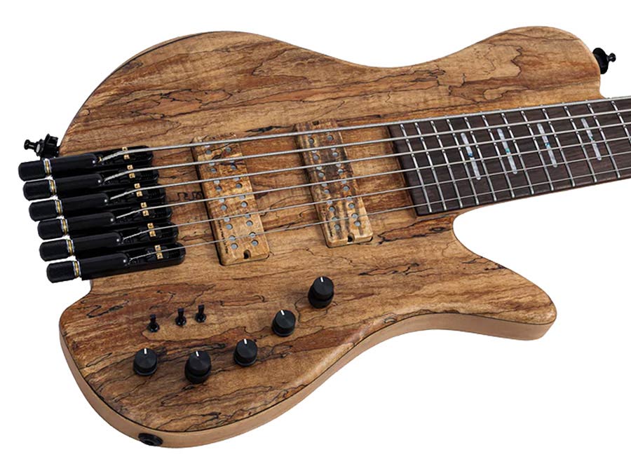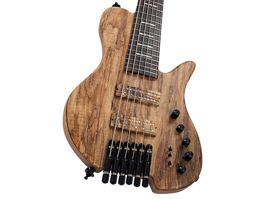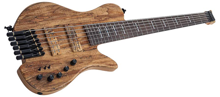 swamp ash + spalted maple top 6-string active headless bass guitar, natural satin, hardfoam case