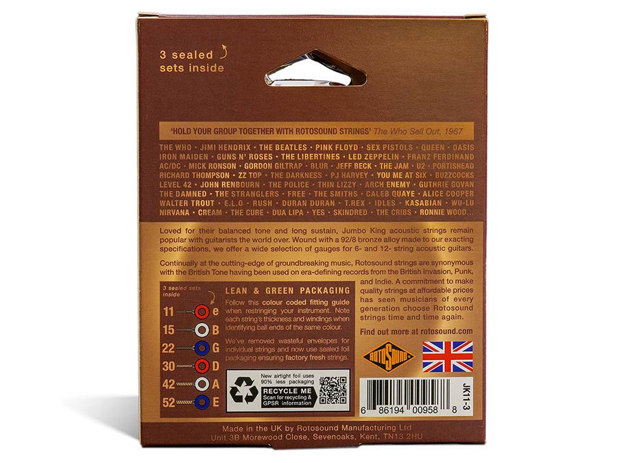 JK11-3 |Rotosound Jumbo King 3-pack - 3 string sets acoustic phosphor bronze wound 11-52