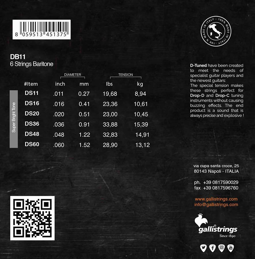 DB-11 |Galli D-Tuned string set electric baritone