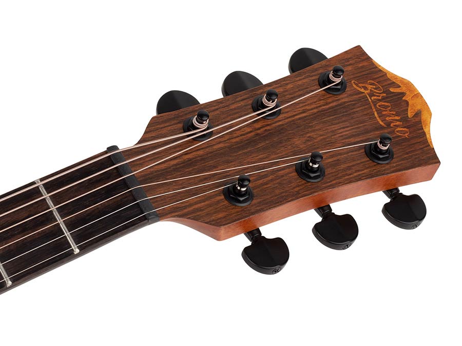BAT models couple a solid Sitka spruce top with premium mahogany back and sides. Sitka spruce is the 1st choice of most players for its articulate, clear tone and prolonged sustain. Compensated by the warmth and mellowness of the mahogany back and sides and further boosted by the innovative ToneFlow bracing system, these guitars sport crystal clear trebles, sonorous mids and a warm bass.
