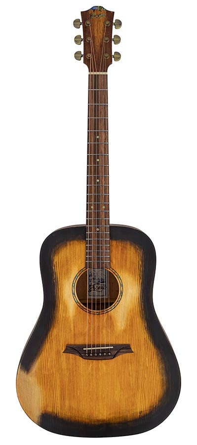 dreadnought guitar all solid tonewoods, amara ebony fb, historic sunburst, and heavy duty bag