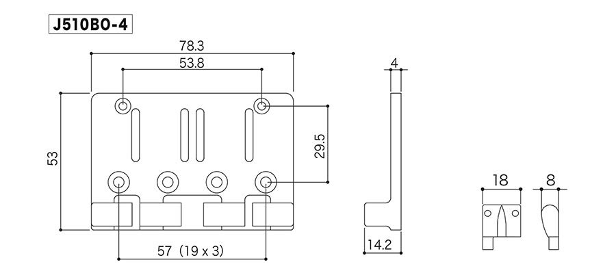 J510BO-4 bass bridge, pitch 19mm, gold