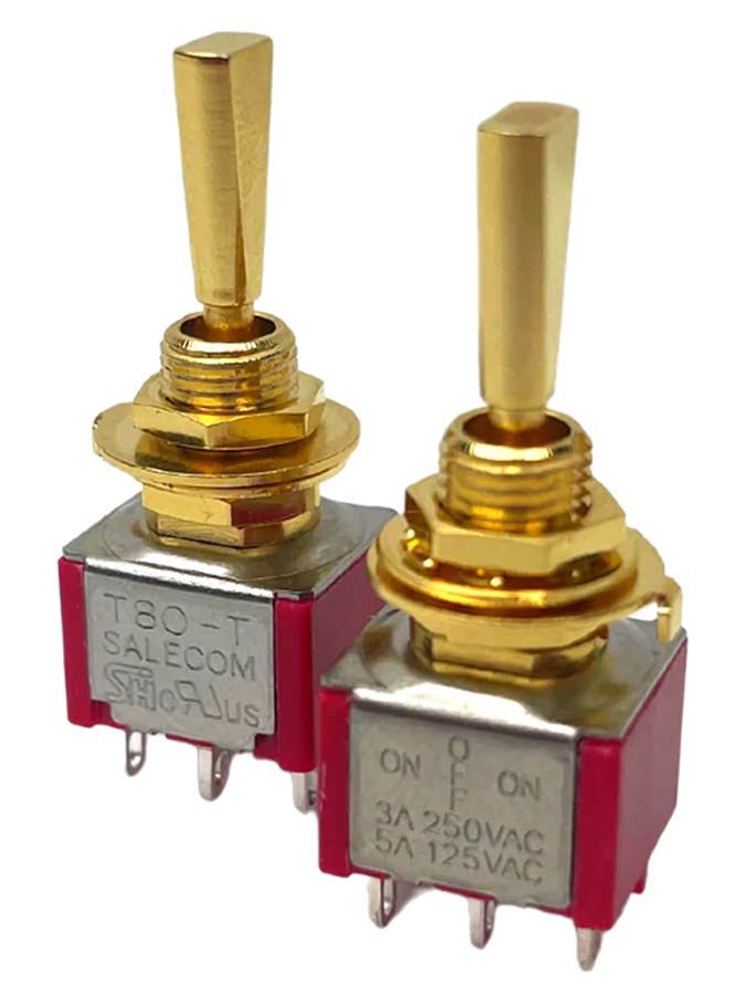On-Off-On miniswitch, DPDT, gold