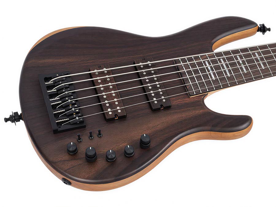 alder + rosewood top 6-string active bass guitar, natural satin, with hardcase