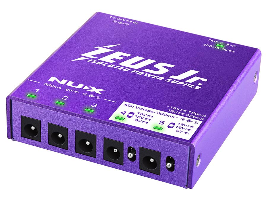 The NUX NIP-Z6 Zeus Jr. is a compact, high-performance power supply designed to deliver clean, stable power to modern pedalboards. With six fully isolated DC outputs, including two adjustable voltage outputs, Zeus Jr. handles both analog and high-current digital pedals with ease. Its ultra-low-noise, self-regulated output ensures consistent performance without interference, making it ideal for stage or studio use. Despite its small footprint, Zeus Jr. packs serious power and comes ready to mount on virtually any board, offering a reliable and efficient solution for demanding pedal setups.