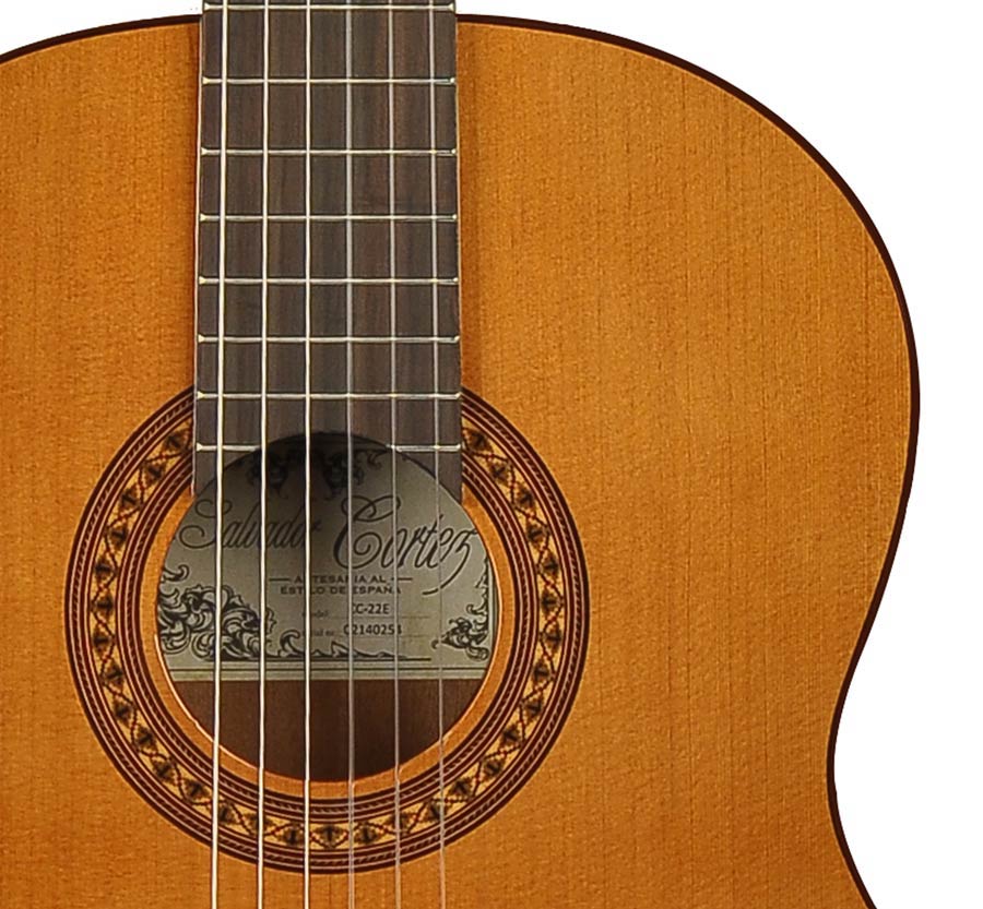 The CC-22 by Salvador Cortez, with its solid top and easy-going playability, is an ideal first guitar and for that reason also recommended by many teachers in their incipient adepts. The CC-22 has a round, warm sound and a very neat and durable finish.