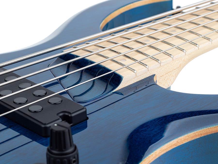 Composed of a 3-band EQ and a switch allowing complete tonal control from the active or passive modes, when combined with Marcus Blue Humbucker Pickup produces strong and solid mid-tones.