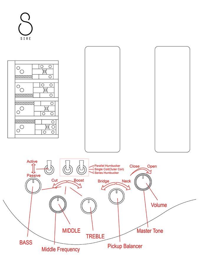 Pure and advanced humbucking pickup set that separates the noise to bring out the powerful bass sound.