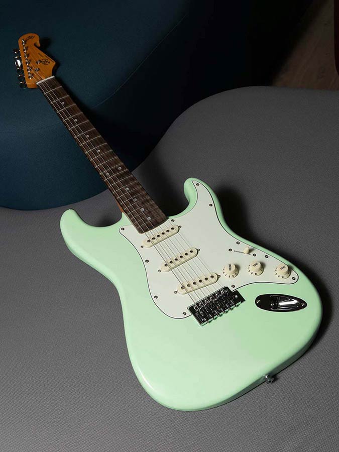 The classic Surf Green colour was inspired by the famous ’57 Chevy car. It was used by Fender from 1960 to 1965, mainly for Stratocaster with white pickguards.
