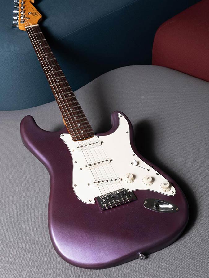 This modern style metallic finish is used for current production guitars by several brands/manufacturers. The Fender version first appeared in the early 2000's on the J. Mascis / Dinosaur Jr. signature Jazzmaster. The colour is also used for J's more recent signature Tele guitar. Also it's been regularly used by the Fender Custom Shop. It pairs very well with a gold anodized pickguard.