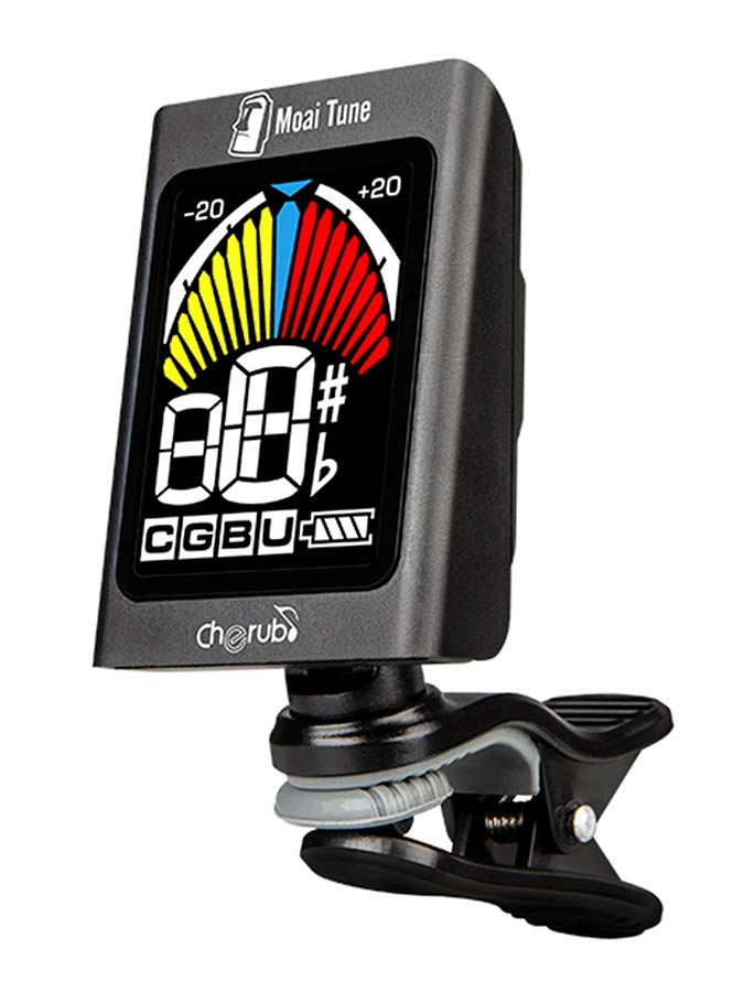 rechargeable chromatic clip tuner 'Moai Tune', with multi color display, auto power on/off