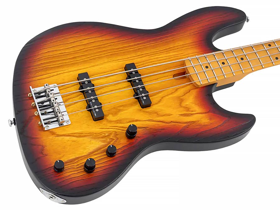 mahogany+ash top 4-string active bass guitar 3 tone sunburst