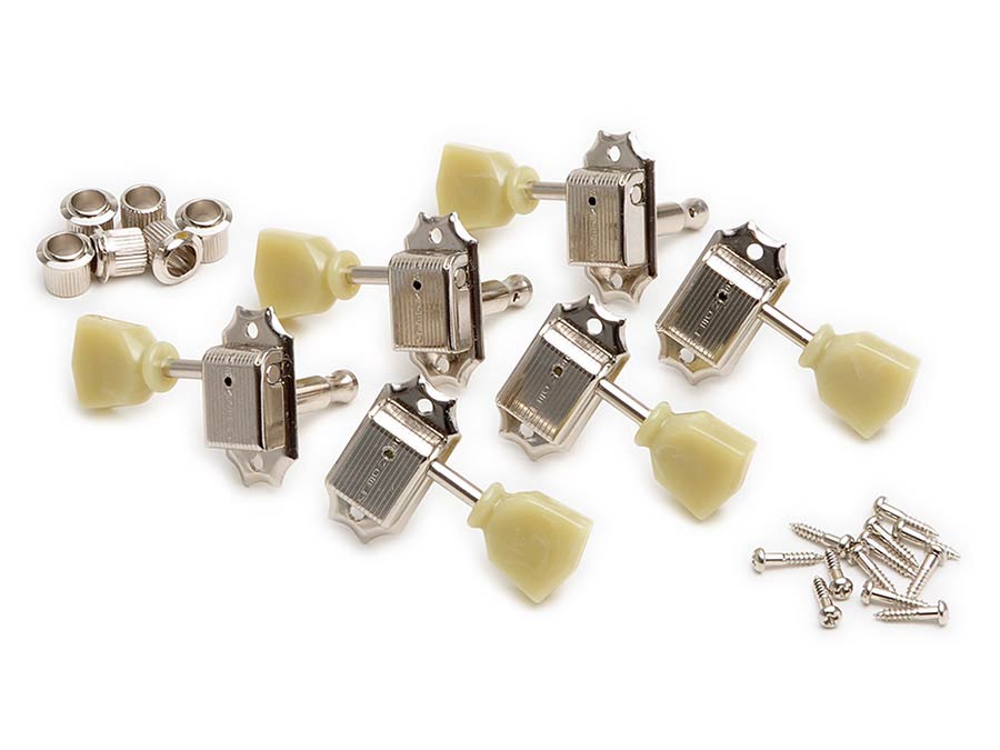 machine heads for guitar "Single Line", 3x left+3x right with tulip buttons, nickel