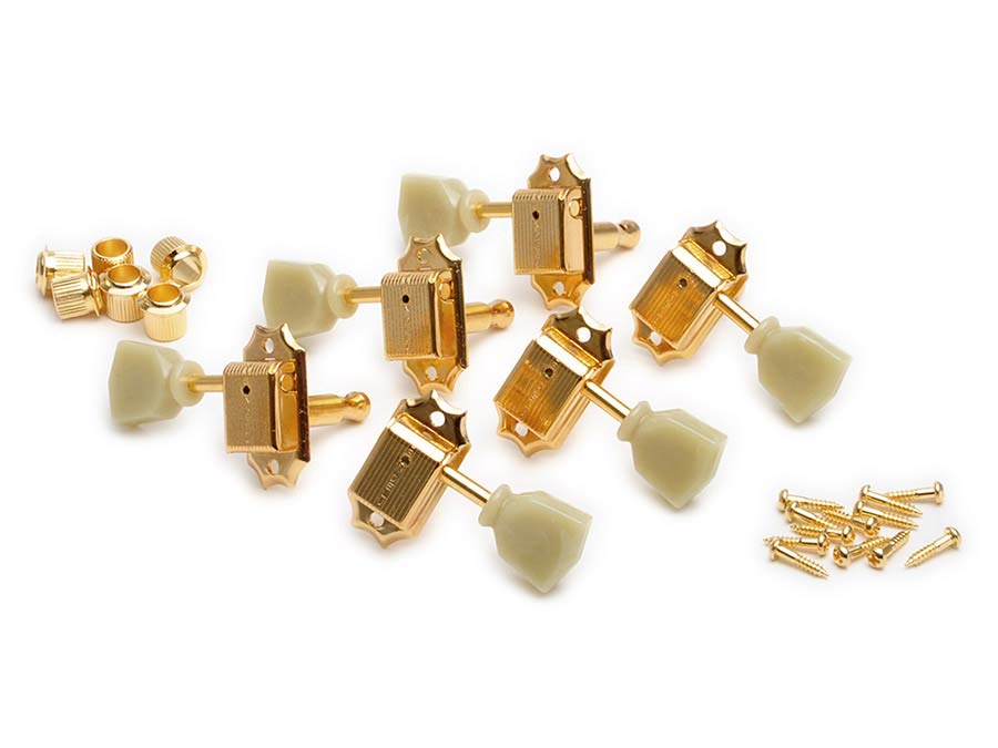 machine heads for guitar "Single Line", 3x left+3x right with tulip buttons, gold