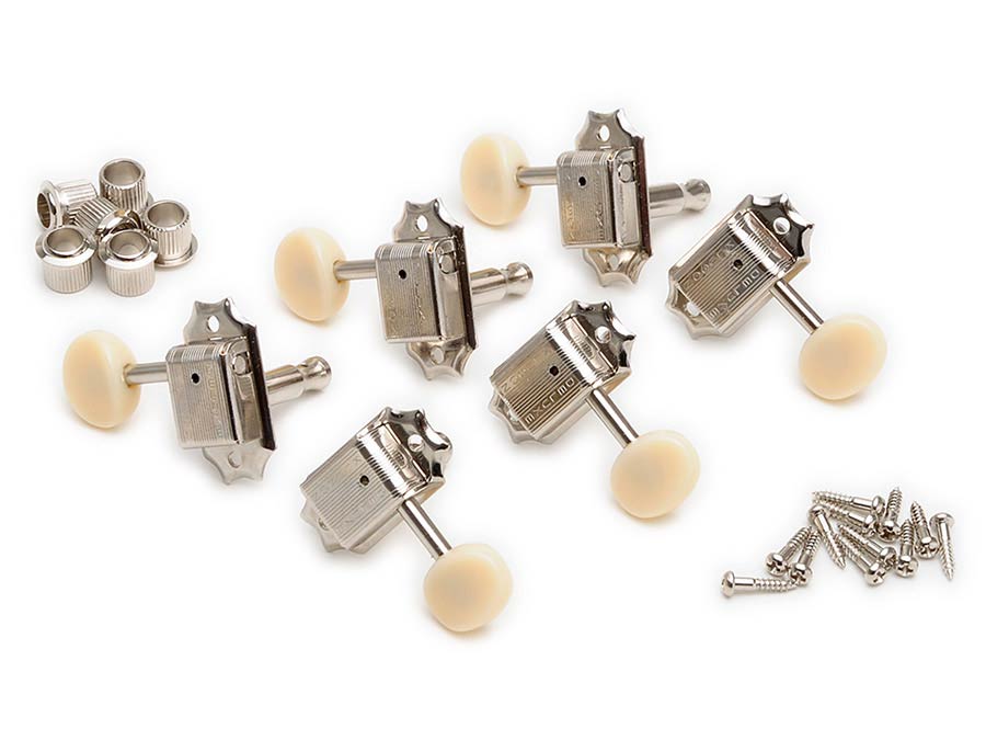 machine heads for guitar "Double Line", 3x left+3x right with cream oval buttons, nickel