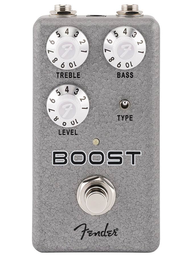 A true double feature, the Hammertone® Boost pushes your signal to new levels with two distinct flavors of boost in one enclosure. Use the Type switch to select between a pristine, clean opamp boost circuit designed for colorless volume boosting and a JFET based boost that fattens your signal with a taste of harmonically rich compression characteristic of preamps in vintage tape units. Easily attain a completely flat boost thanks to the center detents on the Treble and Bass controls or adjust each knob to your liking – boosting and cutting frequencies as you see fit. This all-in-one boost pedal is capable of solo boosting with no added coloration, pushing your amp into breakup, sweetening your core tone, and so much more.