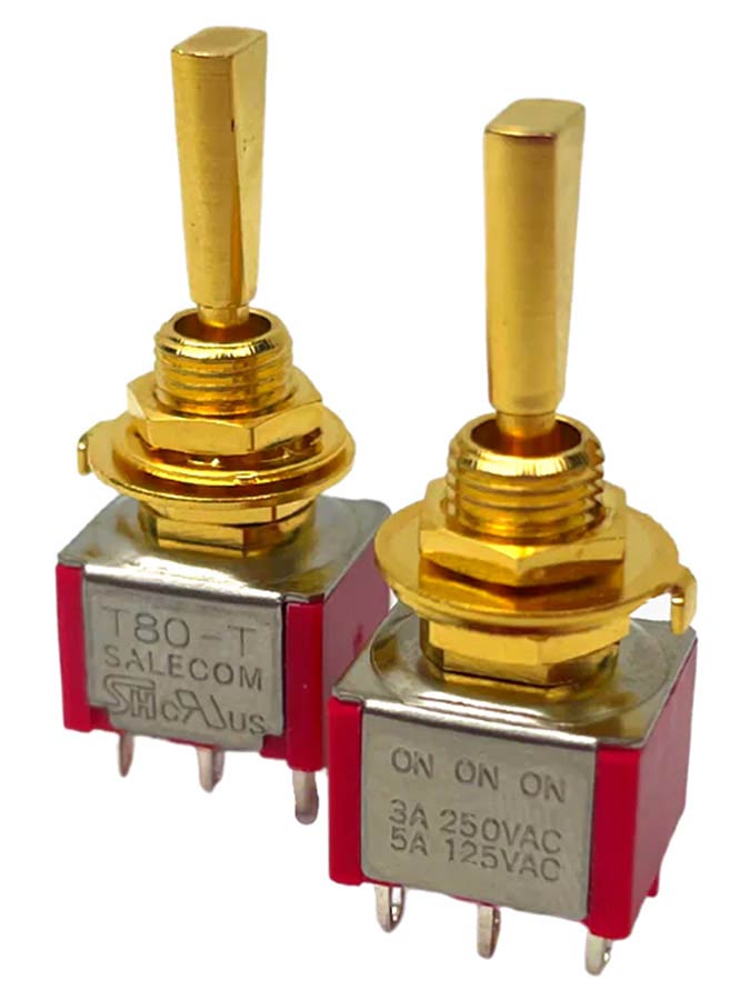 On-On-On miniswitch, DPDT, gold