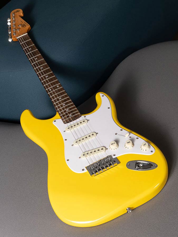 This color is not a very common Fender finish but it's quite spectacular in real life. It gives a very different touch to your guitar and goes well with a maple fingerboard and a white pickguard.