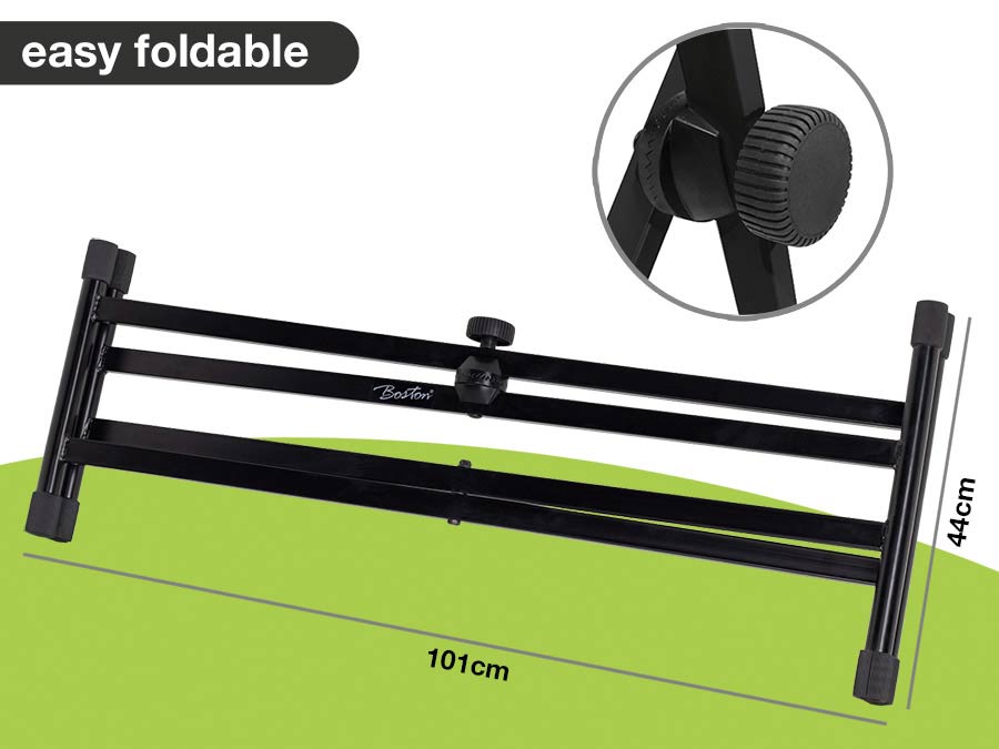De KS-205 is een degelijk en solide keyboardstatief van Boston van het type dubbel-X. Hij is in hoogte te verstellen en zowel zittend als staand te gebruiken. Geschikt voor middelgrote tot grote keyboards. De KS-205 is makkelijk in te klappen en mee te nemen, wat hem uitermate geschikt maakt voor gebruik op 't podium.
