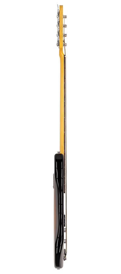 Deze 3/4 basgitaar is een zeer degelijke budget basgitaar. Hij is wat kleiner van formaat dan een 4/4 basgitaar wat hem ideaal maakt voor kinderen vanaf ongeveer 10 jaar. De mensuurlengtevan de 3/4 bas is 76 cm. De 4/4 bas heeft een mensuurlengte van 86 cm. Hij heeft een palissander toets, split single coil pickup en heeft de kleur sunburst.