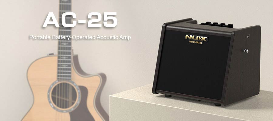 NUX AC-25 is een compacte akoestische versterker met een ingebouwde oplaadbare batterij die 4 uur mee gaat. Ideaal voor het musiceren op straat. Hij is uitgerust met een 6,5" luidspreker, Modeling Preamps, Reverb, Bluetooth Audio Stream functie en een Drum Machine. Je kunt de versterker naar wens instellen via de Stageman APP op je mobiele telefoon. Dankzij de twee kanalen is er ook de mogelijkheid een microfoon aan te sluiten die naar wens in te stellen is. Tracks zijn af te spelen via de AUX in of bluetooth. Deze amp biedt alles wat je nodig hebt om jezelf en anderen een lach op het gezicht te spelen.