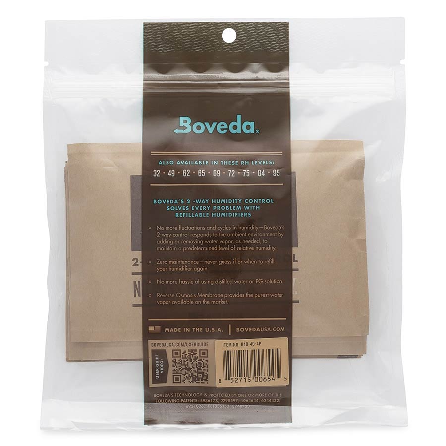 Simply insert the Boveda Pack into the humidifier and the rest will happen by itself! Boveda's unique bags have an osmotic membrane that automatically releases the internal moisture into the environment - at a constant 49% relative humidity. The special feature is that the membrane works in both directions, so that excess moisture can also be reabsorbed. There is no need for refilling at all. If the bag becomes hard and dry, it is simply replaced with a new one.