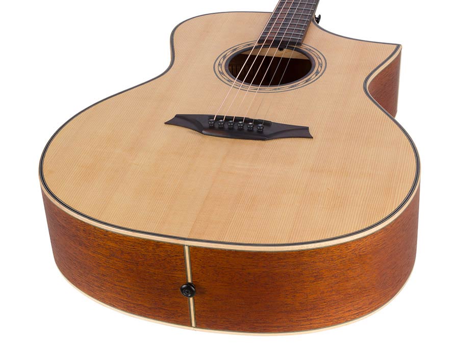 Hillside auditorium guitar with solid spruce top, mahogany b&s, cutaway, amara ebony fb, natural