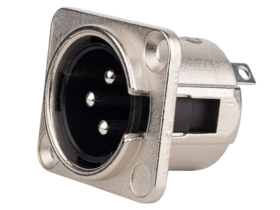 xlr chassis conn, male, 3-polig, nikkel, 19 x 24mm