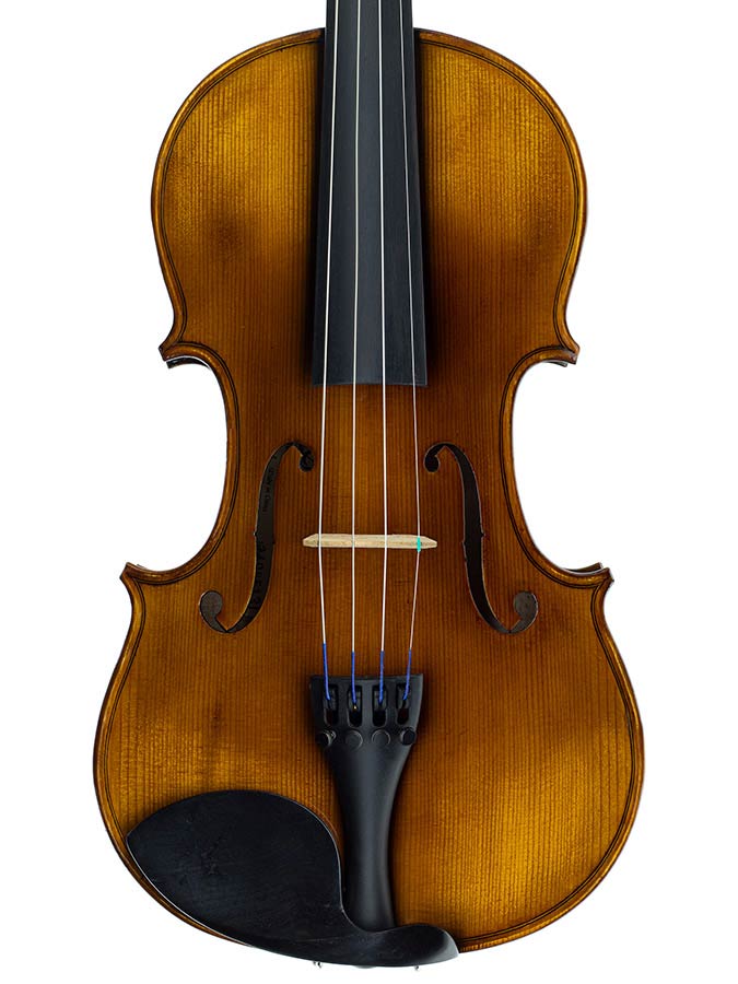 This fine Cremona violin is crafted from the finest selected tonewoods. A clear, transparent varnish highlights the straight-grained solid spruce and figured solid maple. The varnish is slightly shaded to suggest the appearance of a fine, old instrument. The edgework and purfling are clean and artistic, and the scroll is beautifully cut. The fingerboard and trimmings are genuine ebony and the violin is given a professional set-up before is leaves our west coast facility. The tone is smooth and pleasing with great carrying power. Though priced for the advanced student, this fine violin would please any professional player.