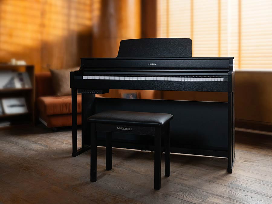 The Medeli UP405E offers a genuine piano feel without unnecessary complexity. Equipped with an 88-key Grand Action 3-sensor Premium (G3P) keybed, it delivers a responsive and expressive touch suitable for both beginners and seasoned players. The 256-note polyphony ensures that every nuance of your performance is captured.