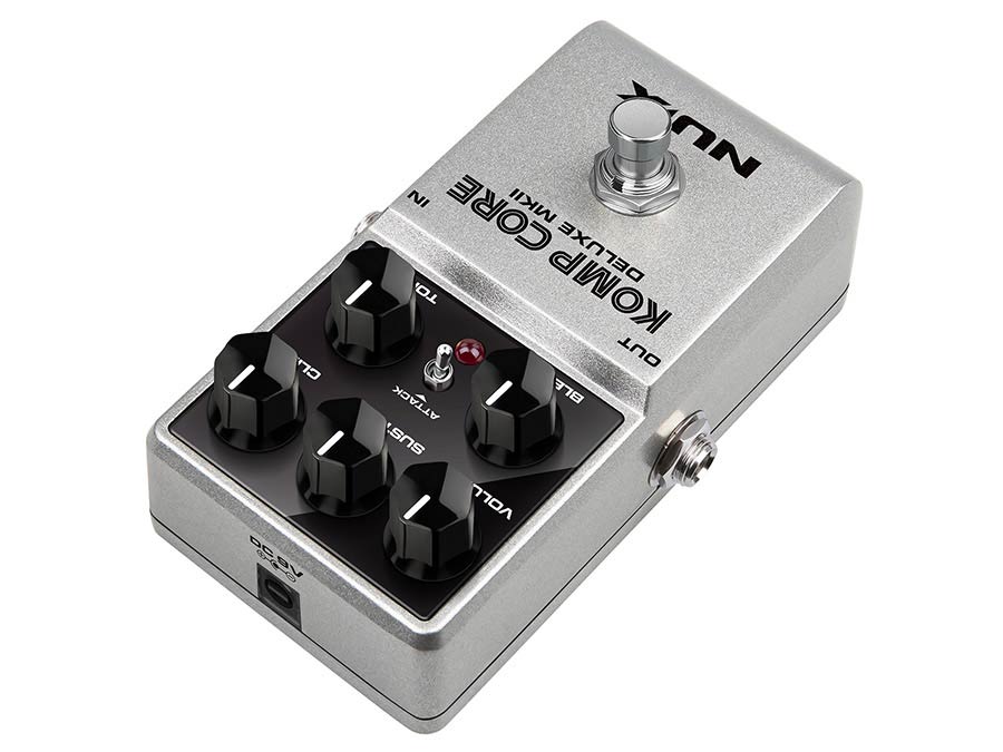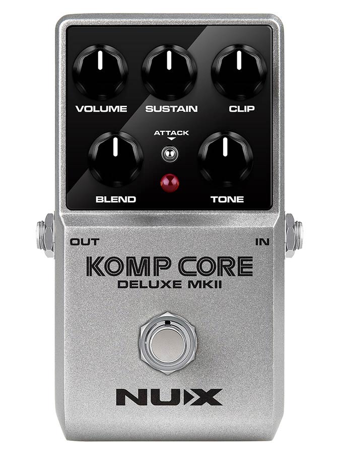 The NUX NCC-2 Komp Core Deluxe MKII is a versatile analog compressor pedal that brings studio-grade compression to your pedalboard. Designed for guitar, bass, and even keyboards, it offers precise dynamic control while preserving the natural tone of your instrument. With five knobs and a toggle switch, players can shape their sound in detail - from subtle sustain to punchy, clipped dynamics. Thanks to its blend control and low-noise design, the Komp Core Deluxe MKII delivers clarity, balance, and a polished sound in both live and studio environments.
