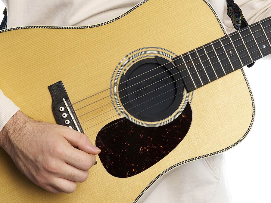 The Martin Feedback Suppressor is designed for the gigging musician to reduce uncontrolled feedback, which allows much higher playing volumes when plugged in. It's made with nitrocellulose-safe material and easily installs in 4” soundholes.
