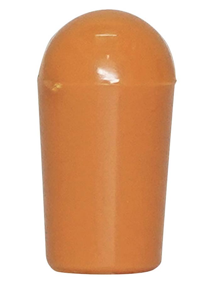 During the ‘50s, the amber switch tips as used on guitars were made from CAB (Cellulose Acetate Butyrate). By the early ‘60s the material used changed to nylon as it’s much more stable and less prone to discolouration and shape distortion. Because of this, white tips became much more common. Still, for a vintage or relic late ‘50s guitar a true CAB tip looks just right.