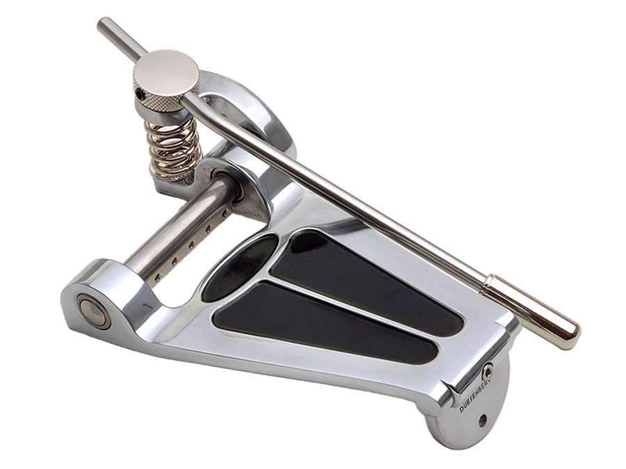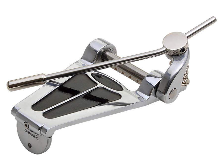 The aluminum frame ensures the best tone transmission, high-quality axle bearings and a precisely tuned spring for the well-known soft tremolo feel without hooks and optimum tuning stability. The 360° rotatable round tremolo arm is adjustable in length, response, position and ease of movement. It's very easy to change strings thanks to guide holes in the axle. It doesn't get any better than this!