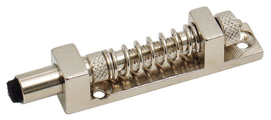 The invisible, lockable zero position for every spring-cavity tremolo. A small spring mechanism ensures that the tremolo block rests in a certain position. This stop can be "pushed away" by overcoming the adjustable spring tension of the return spring. This means that the tremolo can be moved in both directions - upwards and downwards. Easy to install with 2 screws between 2 springs in the tremolo cavity.