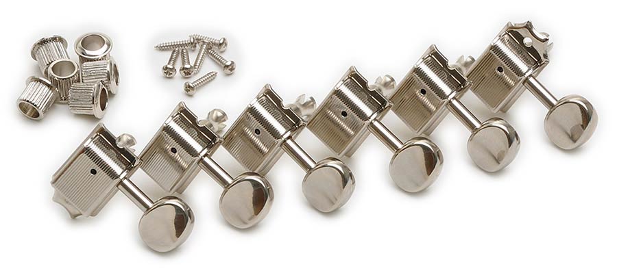 machine heads for guitar "No Line", 6x left with oval buttons, nickel