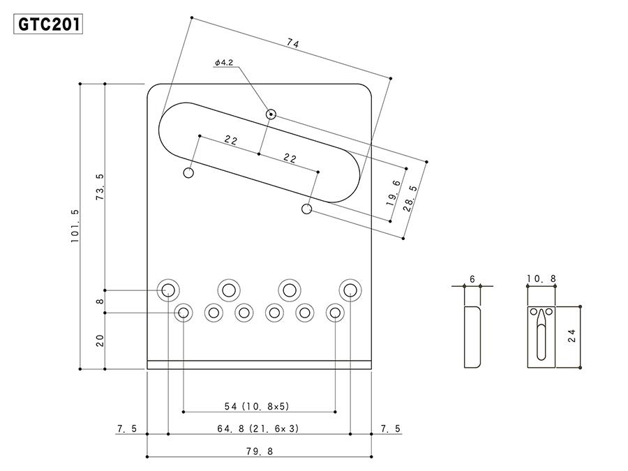 GTC201 guitar bridge with pickup frame, pitch 10.8mm, gold