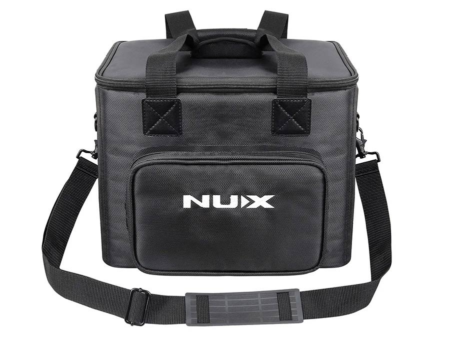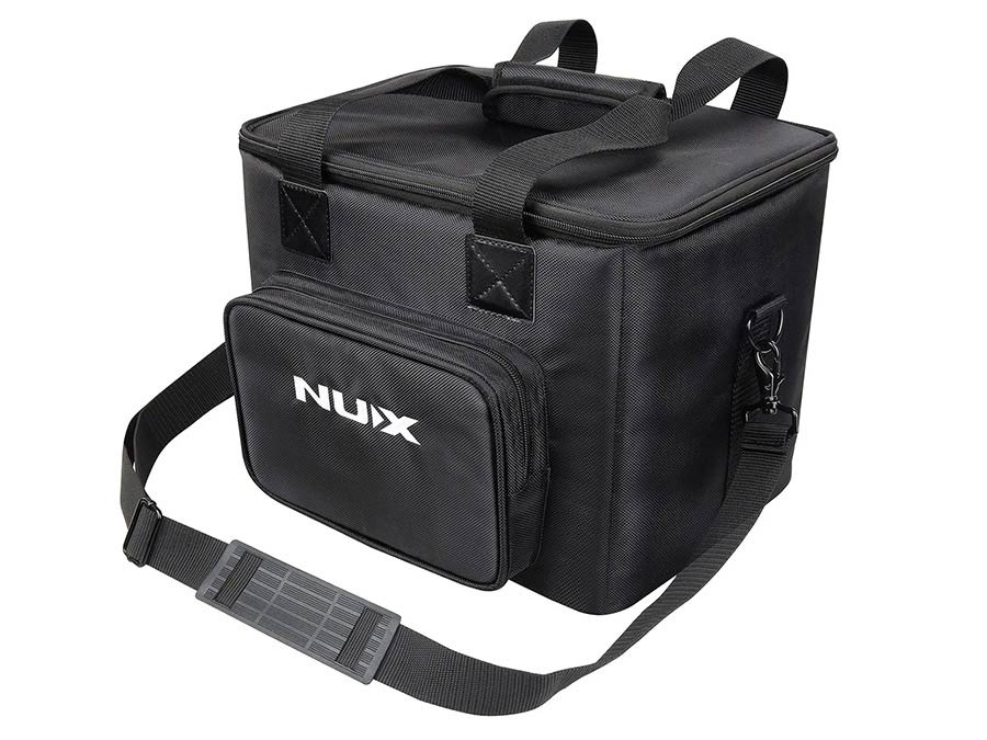 The NUX BAG-AC25 is a padded carrying bag designed to fit the NUX AC-25 amplifier. It offers solid protection thanks to its thick internal padding. A front pocket provides space for small accessories. The bag includes both sturdy handles and a detachable shoulder strap, making it easy to carry.
