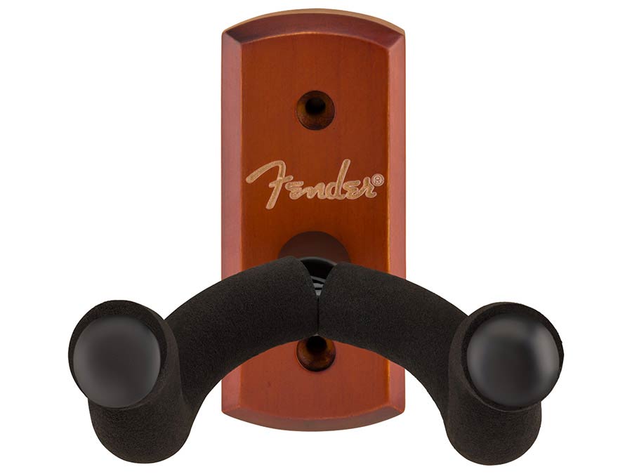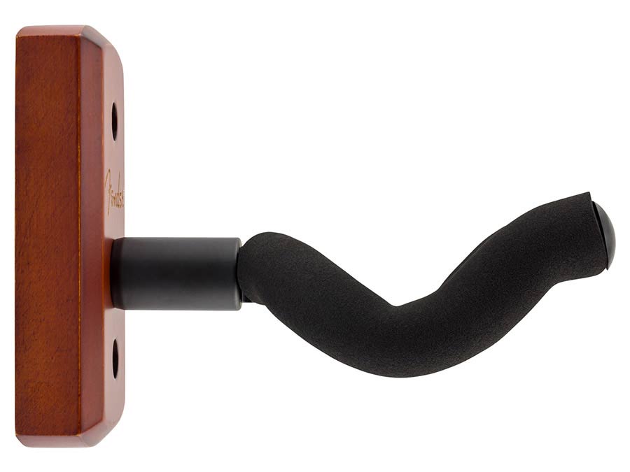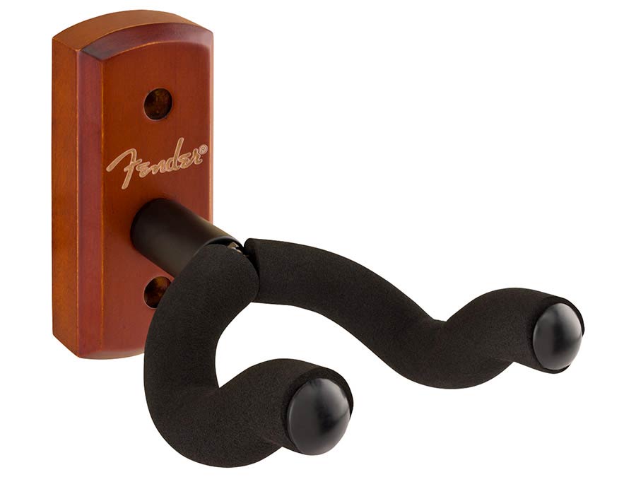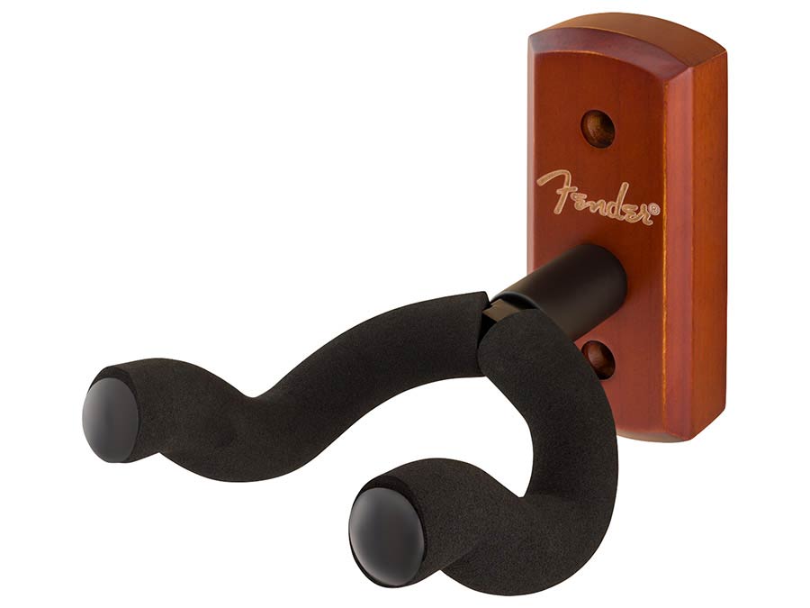 Display your prized guitar in style with the new Fender Essentials Guitar Wall Hanger. Built from durable hardwood with a reinforced steel yoke, it offers a secure hold, while the pivoting EVA foam-padded yoke adjusts to fit most headstock shapes for a straight hang. Complete with a laser-engraved Fender logo and mounting hardware included, the Essentials Wall Hanger keeps your go-to guitar ready to play while adding a subtle touch of Fender flair to your space.