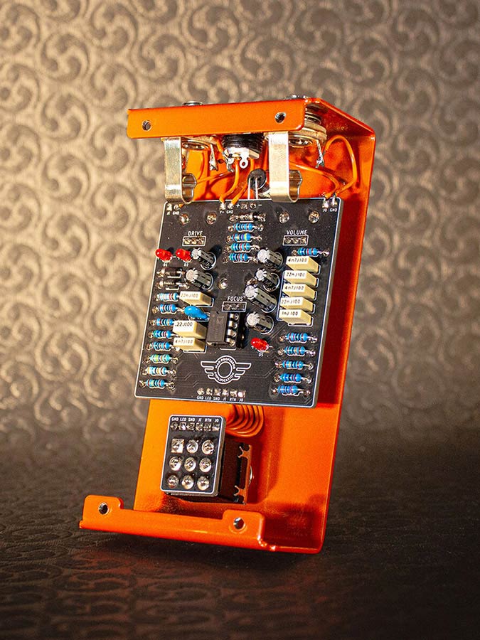-Focus: Controls how easily the circuit distorts and shapes the overall EQ. Turning counterclockwise gives less distortion and a mellower tone; turning clockwise adds a slight treble boost and makes the overdrive respond earlier.