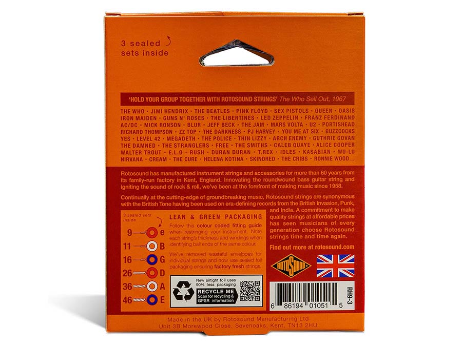 RH9-3 |Rotosound Roto 3-pack - 3 string sets electric nickel wound 9-46