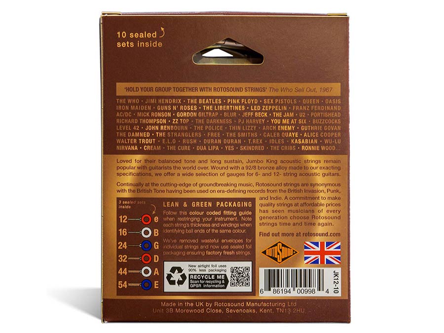 JK12-10 |Rotosound Jumbo King 10-pack - 10 string sets acoustic phosphor bronze wound 12-54