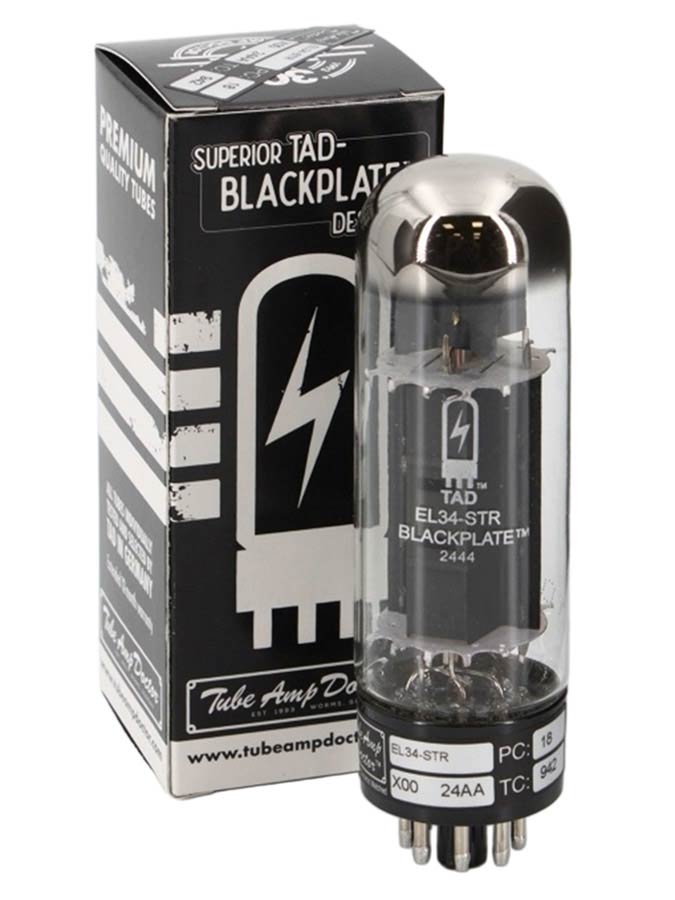 The TAD EL34-STR BLACKPLATE™ delivers a refined interpretation of the traditional EL34 sound. Expect a smooth, musical breakup supported by warm mids, a broad and well-defined low end, and a harmonically rich top register. Its overall response aligns closely with the NOS-style designs associated with early high-quality tube production.
