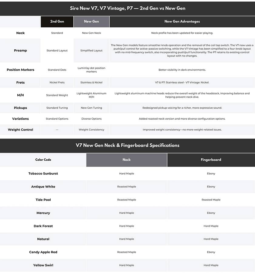 New from Sire: a selection of new models, finishes and series. These instruments reflect a variety of design choices, electronic configurations and playing characteristics. More information will follow soon.